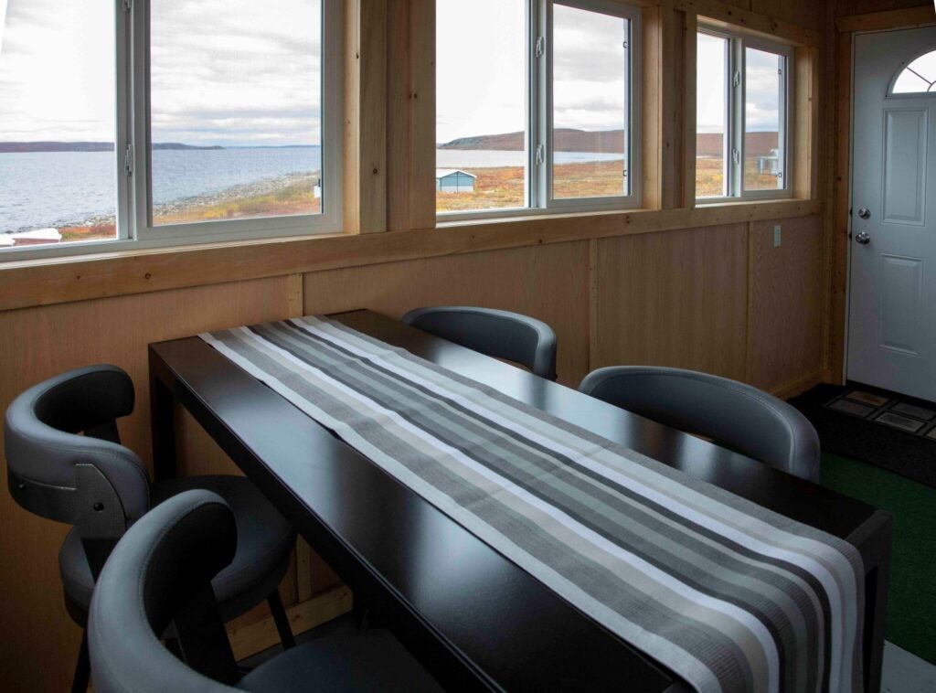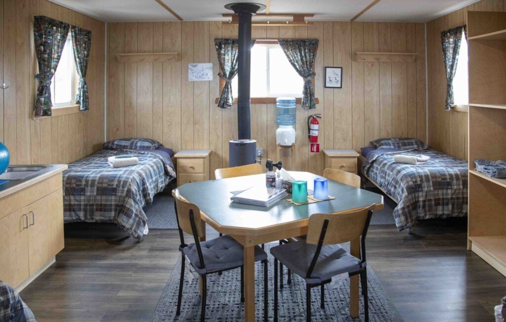 The Wolf Den – is a relaxing retreat with one queen and two single beds. Features an en-suite washroom, custom luggage storage, and heater. The enclosed porch offers plenty of room for fishing gear and a comfortable area to process photos or watch the aurora.